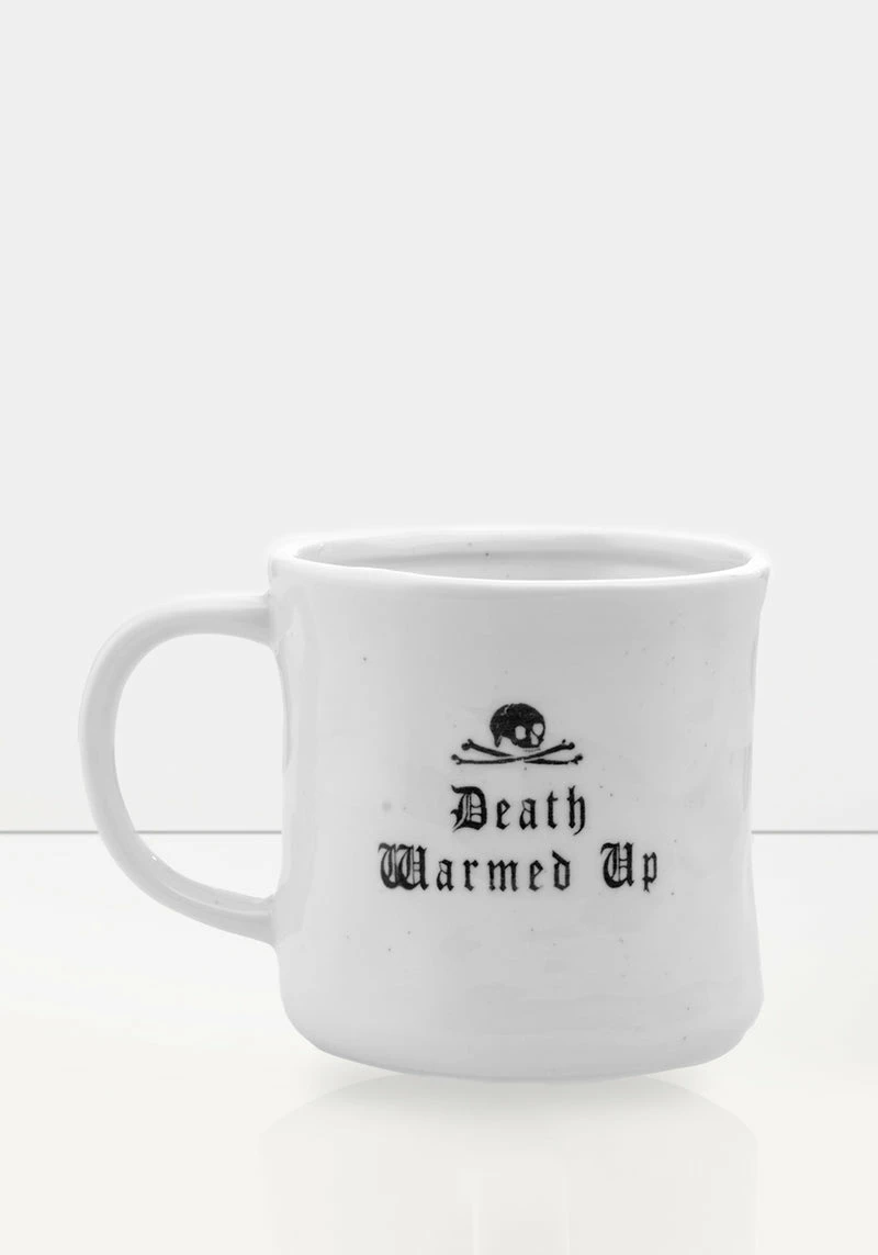 ✧ Ash grey embossed Death Warmed Up design in gothic fontÂ