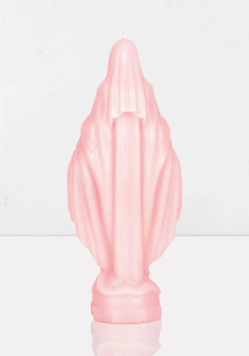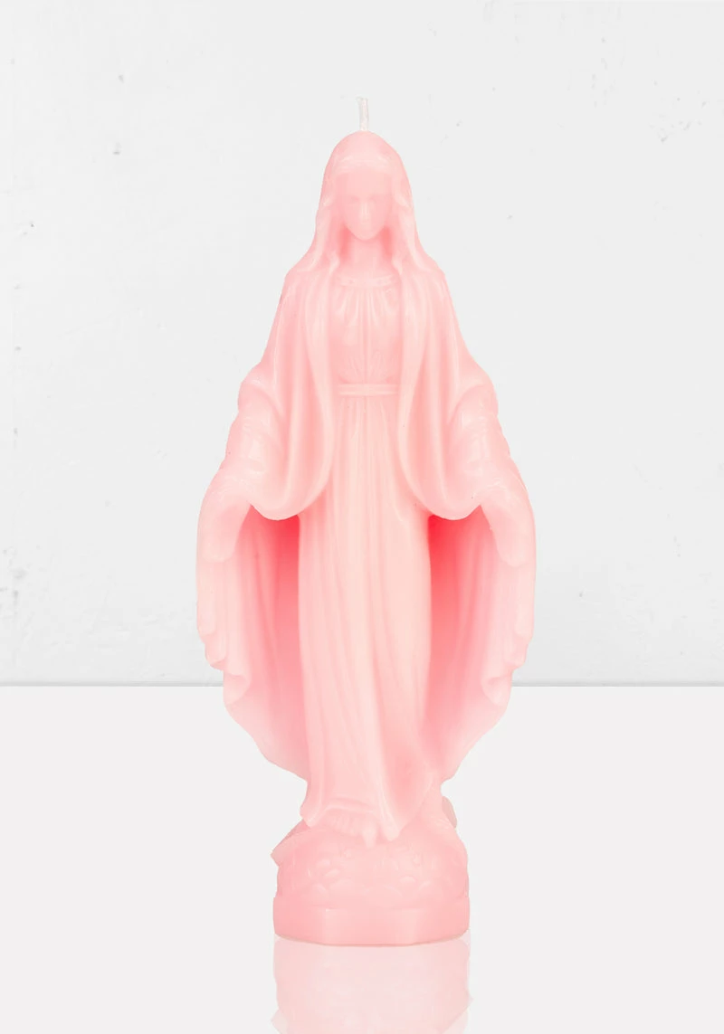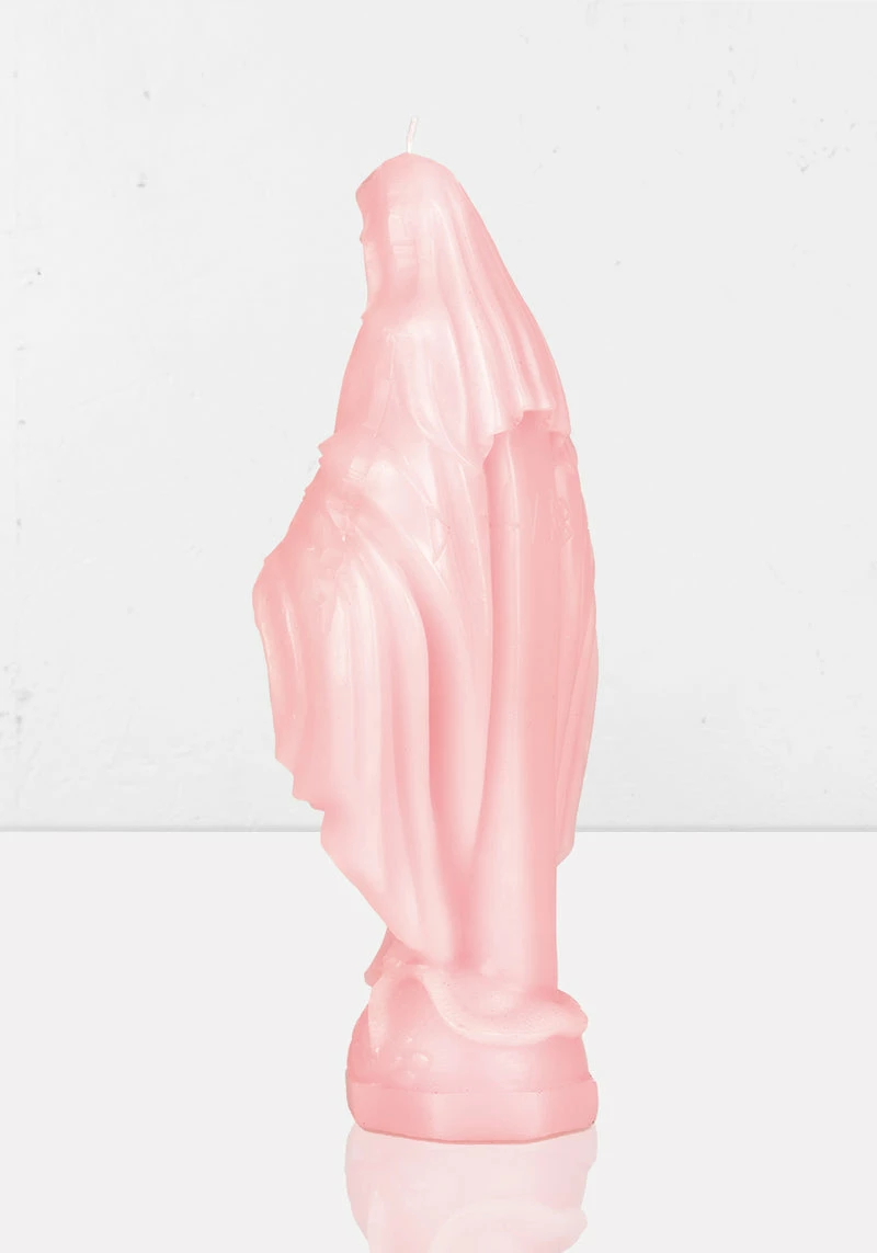 ✟ Virgin Mary candle in baby pink wax