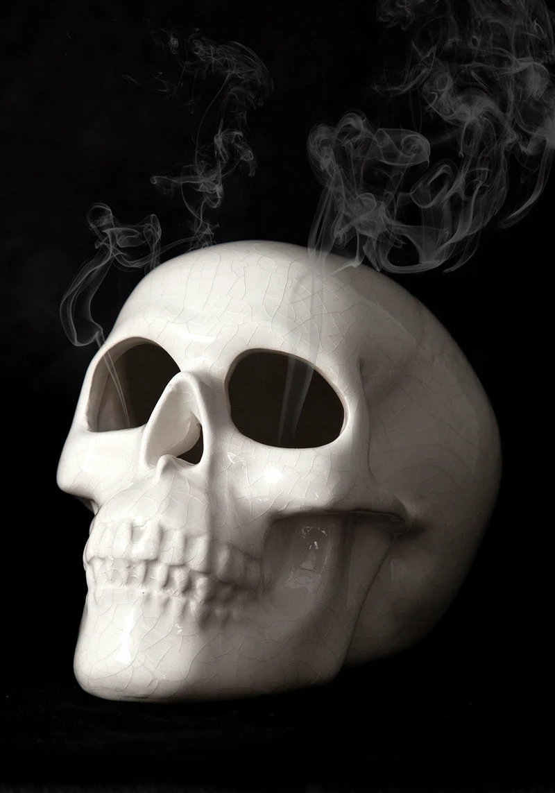 – Realistic skull-shaped incense cone burner