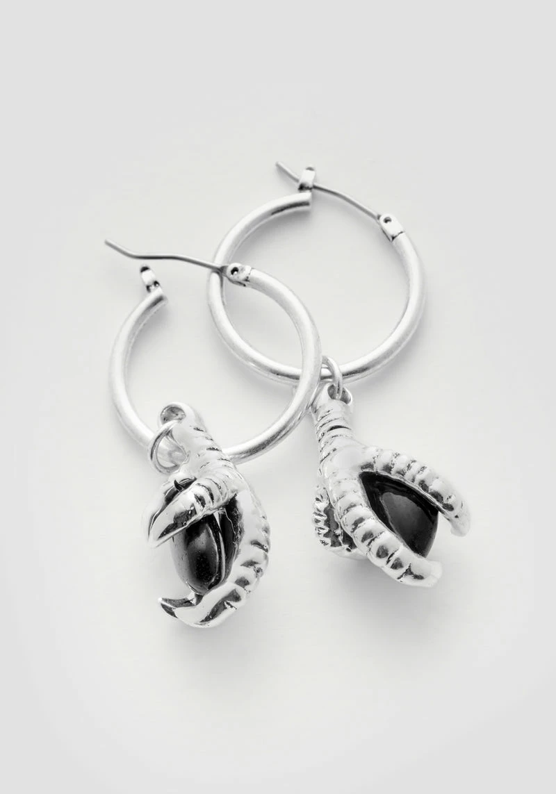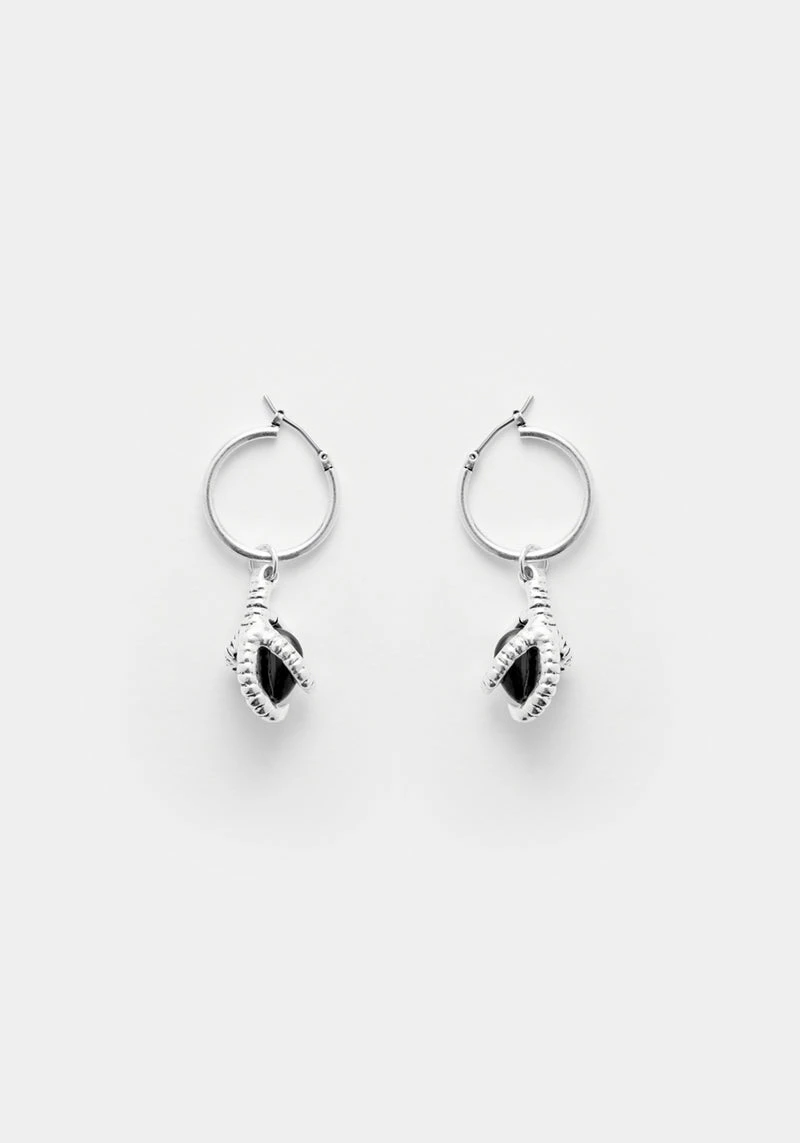 Don’t let the knights have all the fun: take up your sword and ready yourself for the quest of a lifetime. These black agate dragon egg charms set in silver-plated claws are yours to bear. Hang them from delicate earring hoops for protection and become the hero of your own legend.