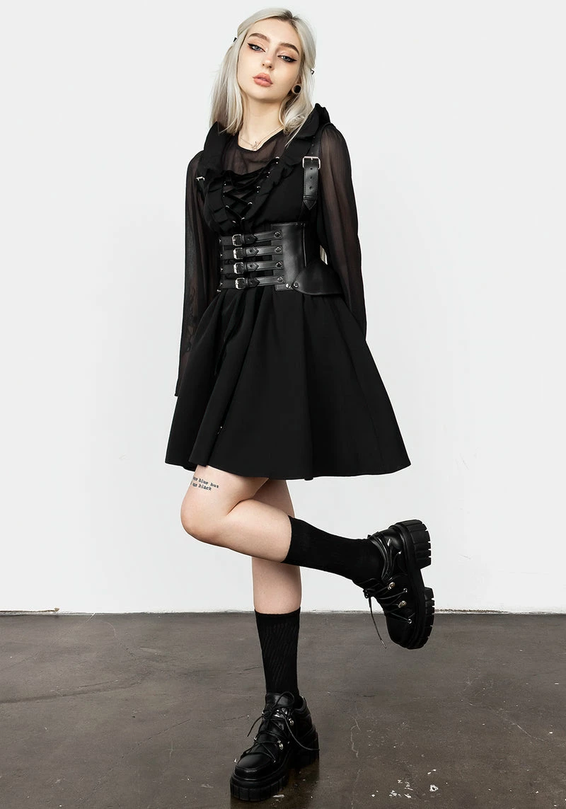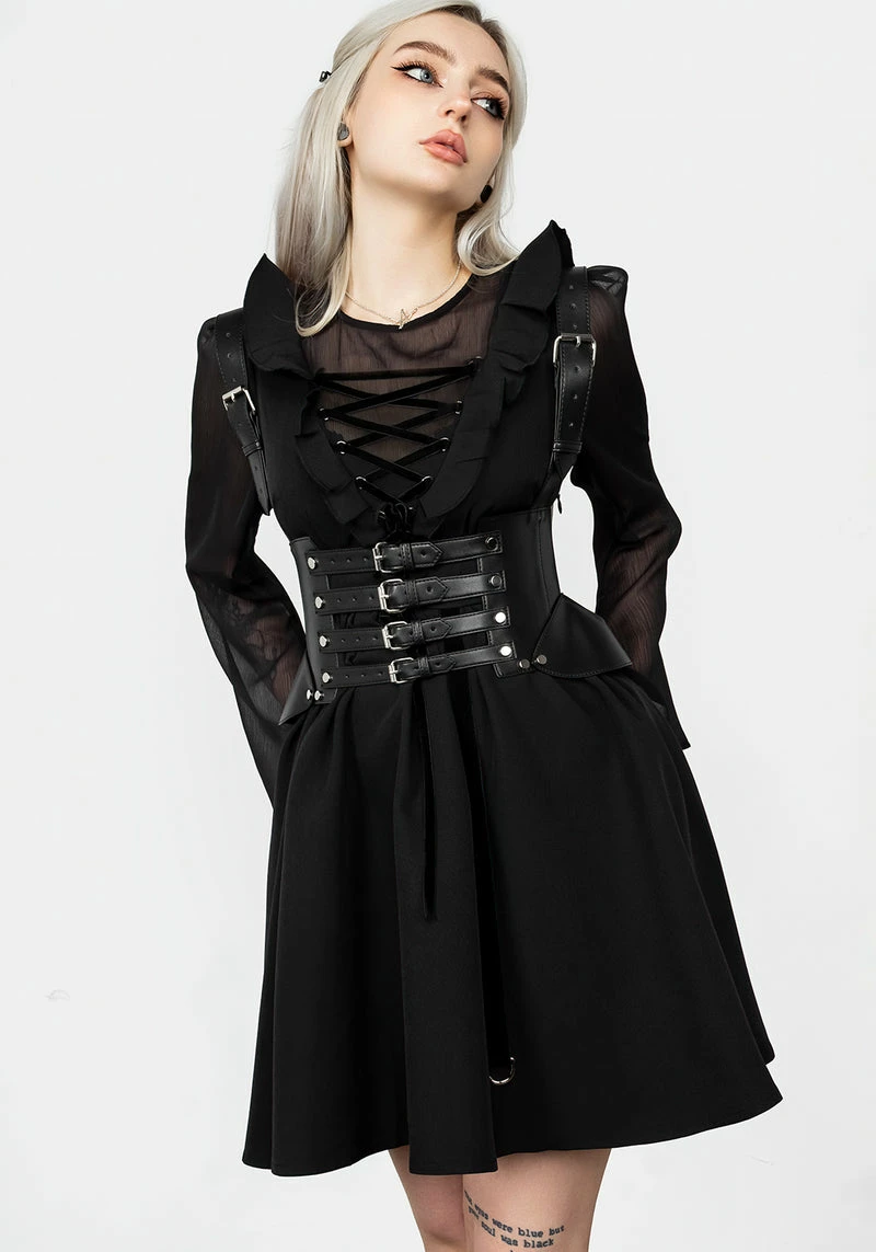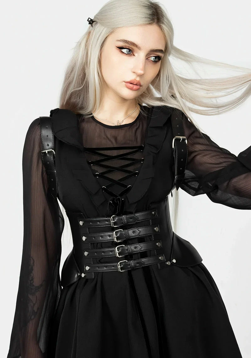 ✦ Sits under the bust to cinch the waist, secured with shoulder straps